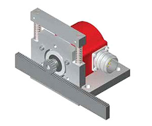 This system consists of a modular, straight tooth pinion and a special rack with a modified pitch that achieves and exact movement of 50mm per turn of the pinion, something that is not possible with conventional racks. If the pinion is secured directly to the encoder shaft, then
